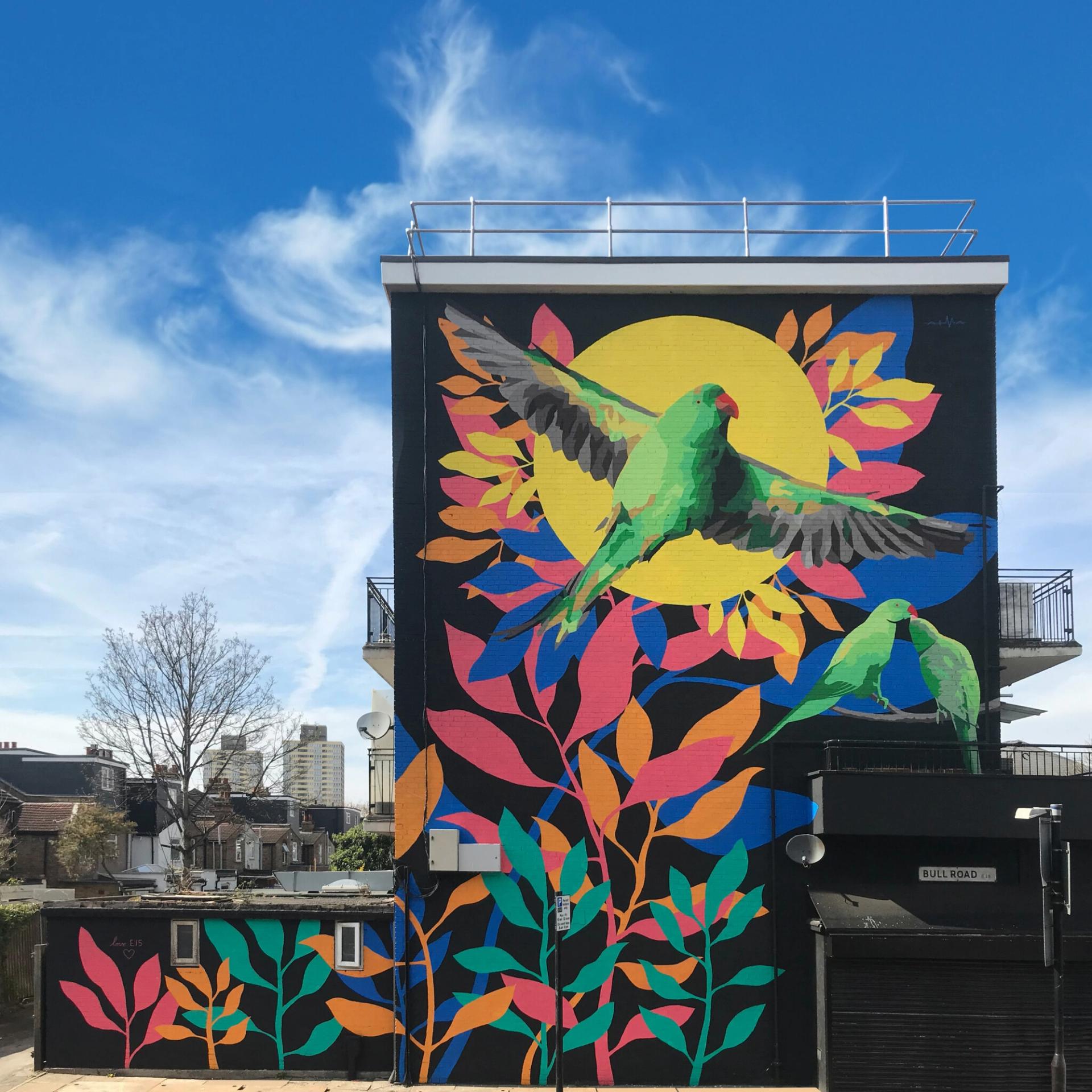 'The parakeets mural has transformed our neighbourhood. It makes everyone smile.'E15 Resident