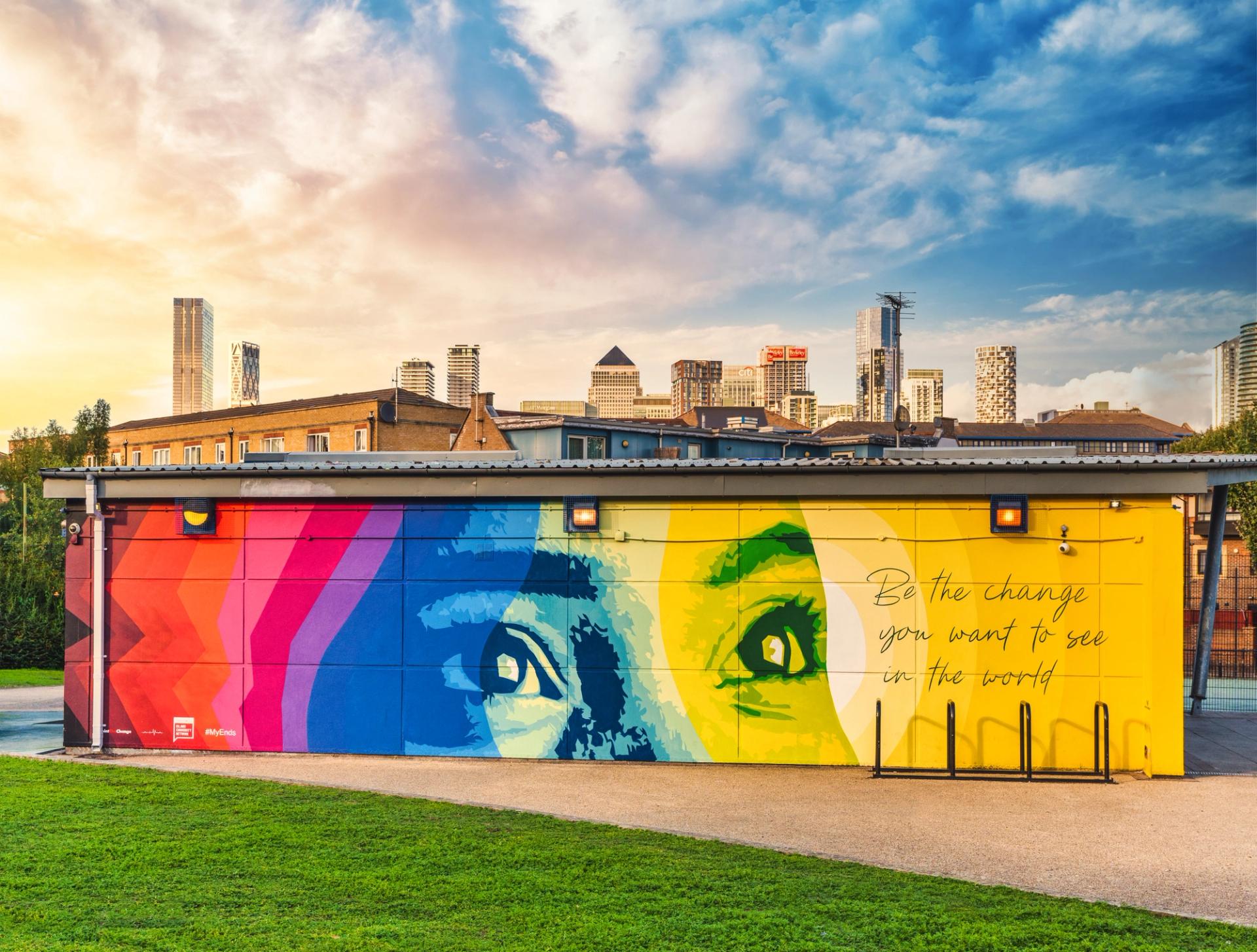 Street artist ATMA used the discussions and artworks from the workshop to design a community mural for St Andrew’s Wharf Youth Hub in Isle of Dogs, where the young participants joined him to paint the wall.