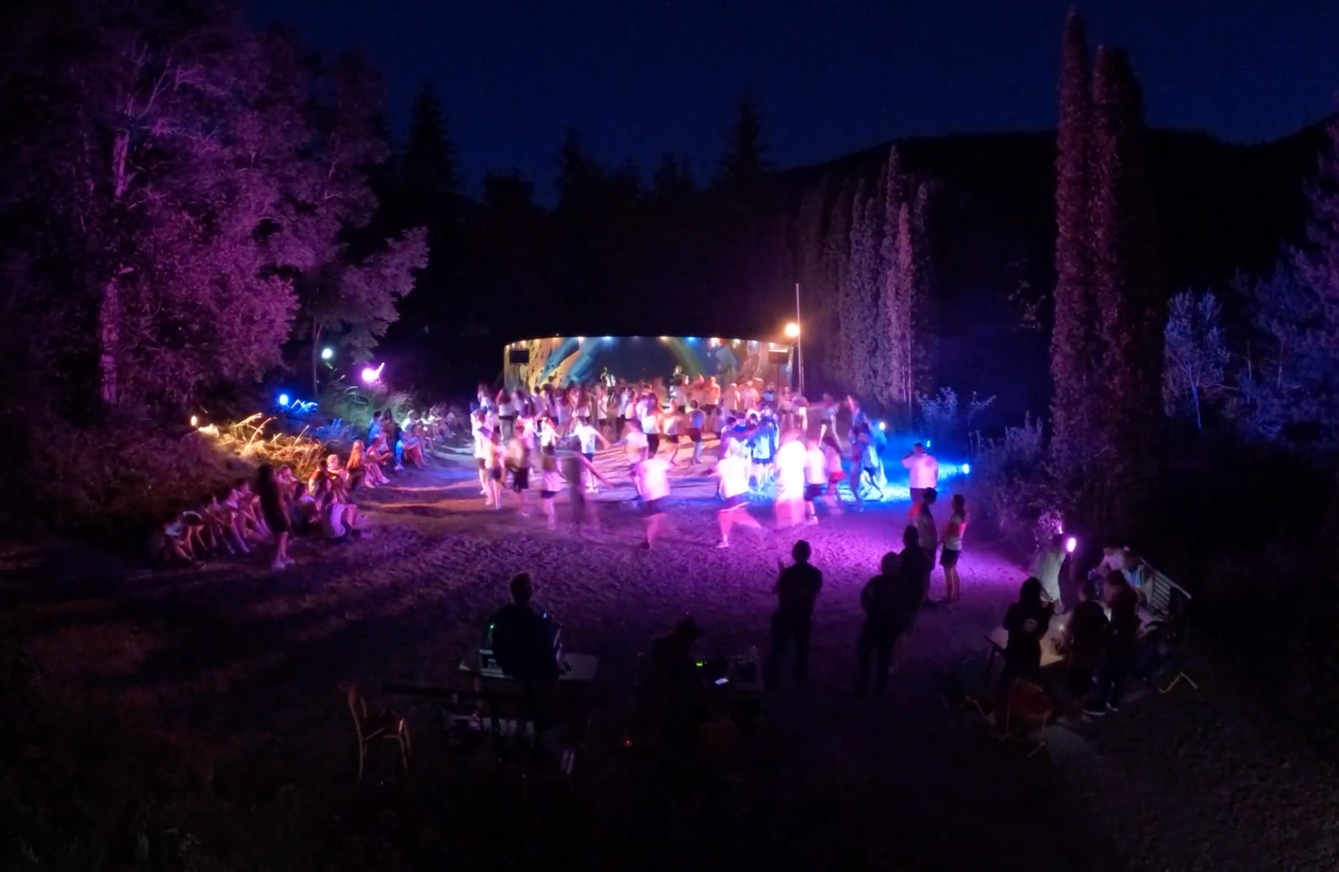 Rounded mural / set design for “le bal”, a french tradition, revisited to inspire and involve 120 young french people.