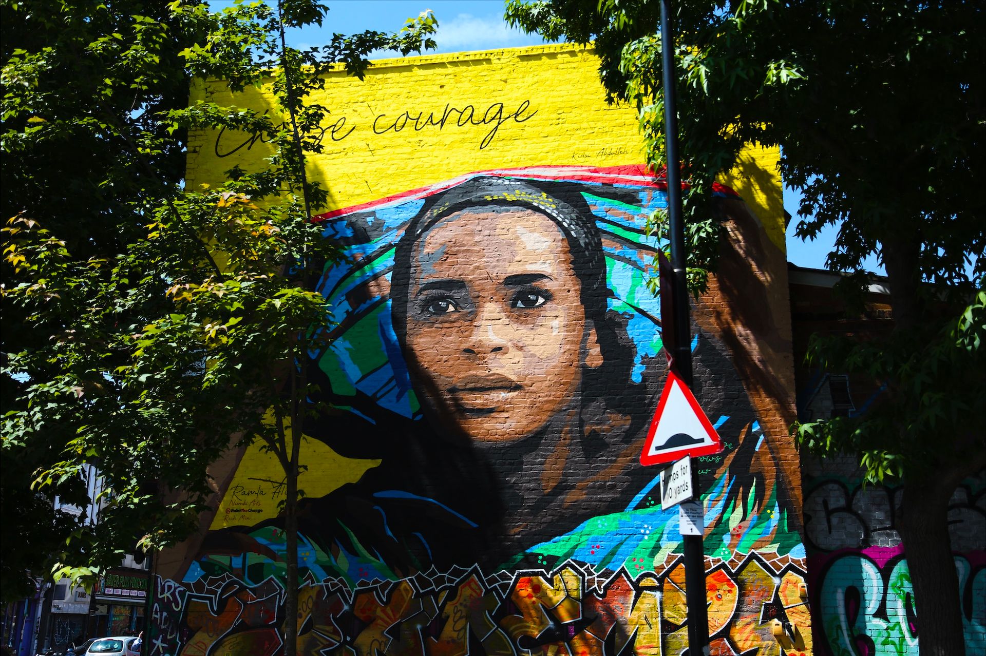 Paint The Change mural for the Rich Mix, collaborating with UK Somalian Artist Kinzi Abdulleh.