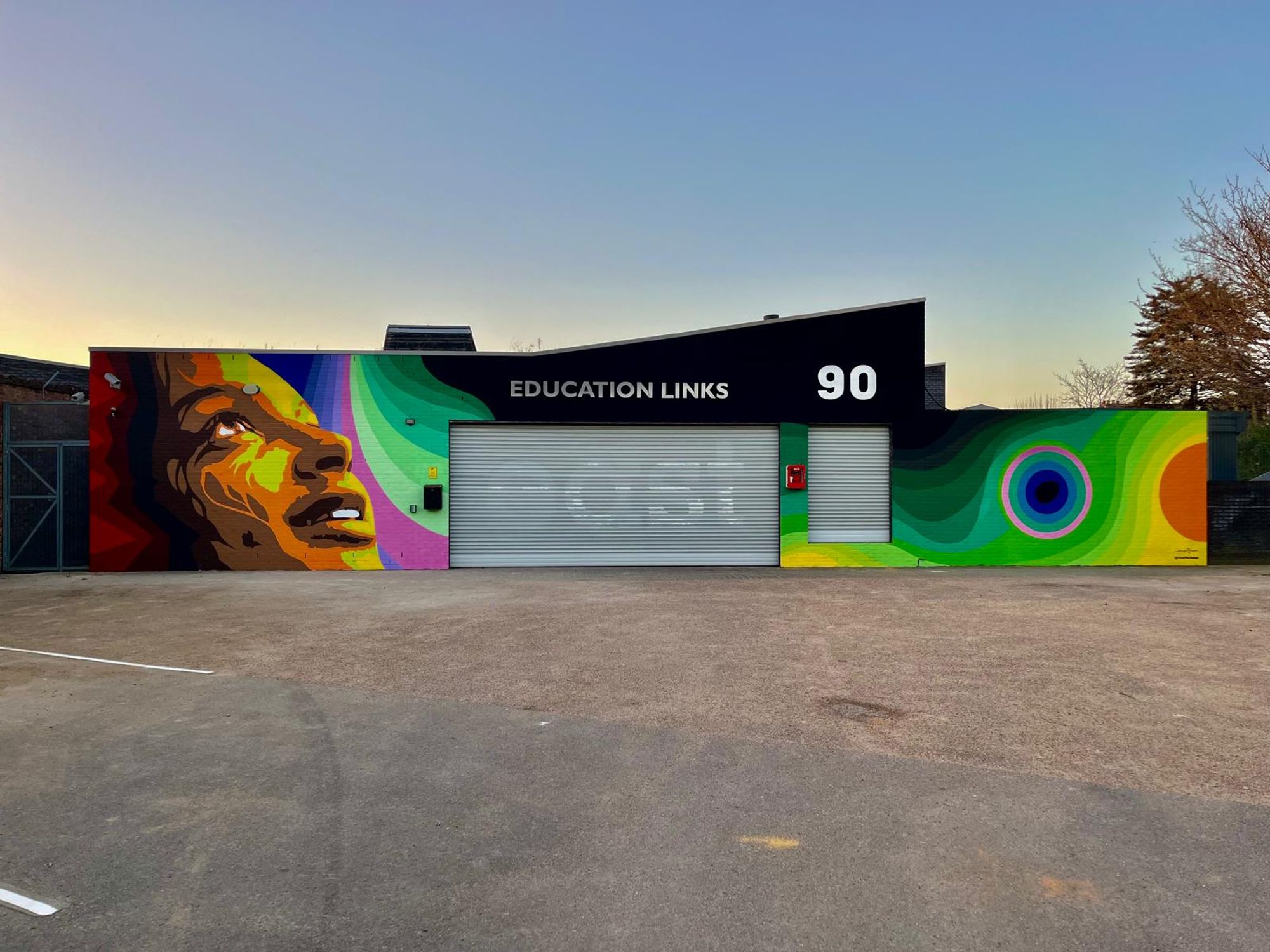 Project for Education Links School in London, painted with the students. The design was created through workshops co lead by poet Mr Gee.